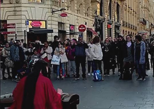 中國姑娘彭靜旋,為讓更多人了解中國傳統(tǒng)音樂,在法國街頭演奏古箏,吸引了眾多外國友人駐足觀看。