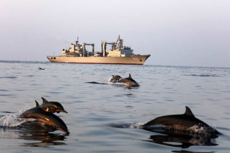 中國(guó)海軍赴亞丁灣索馬里海域護(hù)航編隊(duì)始終秉持海洋命運(yùn)共同體理念,堅(jiān)持人與大海和諧相處,注重生態(tài)環(huán)境保護(hù),贏得大自然積極回報(bào),經(jīng)常出現(xiàn)編隊(duì)艦艇航行時(shí)有成群海豚伴航、待機(jī)集結(jié)時(shí)有各類魚群相伴的和諧場(chǎng)景。