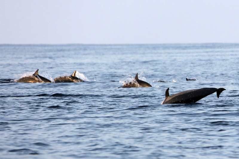 據(jù)到亞丁灣執(zhí)行過9批次護(hù)航任務(wù)的二級(jí)軍士長(zhǎng)李小文介紹,在亞丁灣這片海域,數(shù)十條海豚伴隨護(hù)航艦艇航行最為常見。今天這群在亞丁灣中部海域出現(xiàn)的海豚數(shù)量之多、規(guī)模之大、隨艦歡騰之長(zhǎng),他也是第一次見到。(鐘魁潤(rùn)攝影報(bào)道)