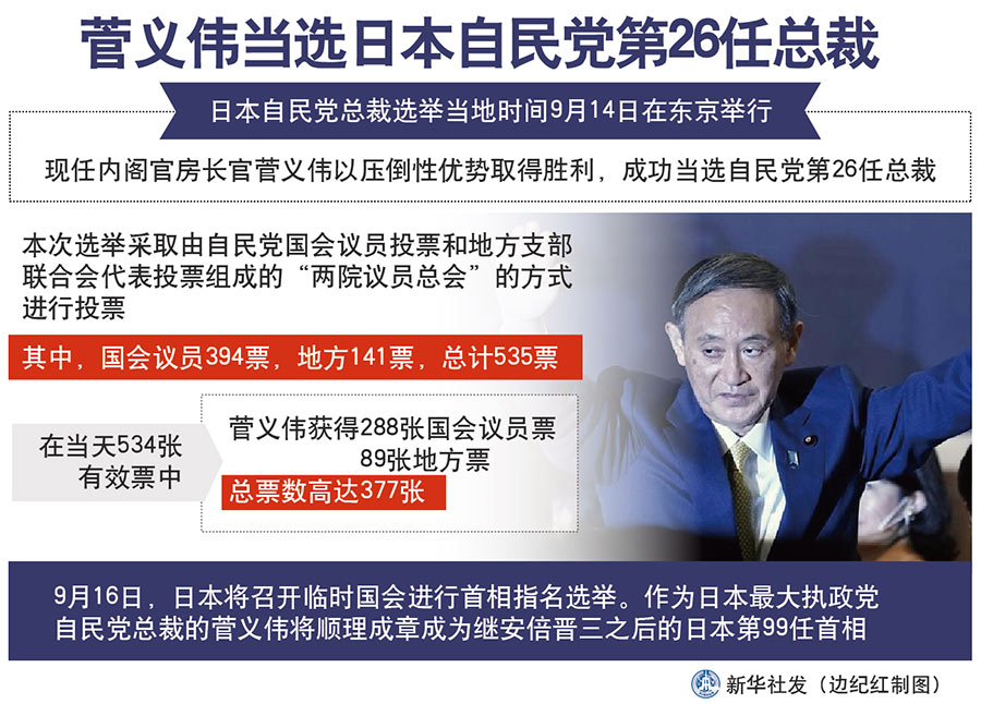 (國際)(2)日本內(nèi)閣官房長官菅義偉在自民黨總裁選舉中獲勝