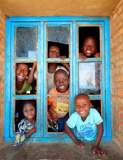 布隆迪加通巴村學(xué)校的學(xué)生們?cè)诳醇夹g(shù)人員安裝衛(wèi)星電視接收設(shè)備。(圖由受訪者提供)