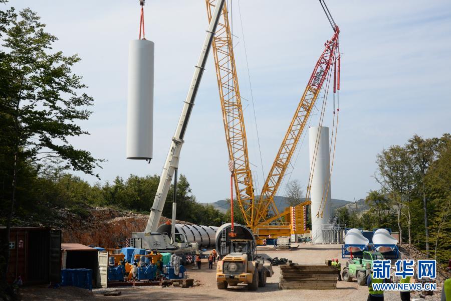 這是9月16日拍攝的克羅地亞塞尼風(fēng)電項(xiàng)目風(fēng)機(jī)塔筒吊裝施工現(xiàn)場(chǎng)。新華社記者 高磊 攝