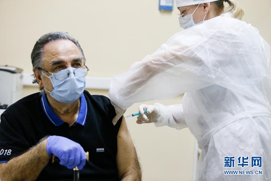 12月30日,在俄羅斯首都莫斯科,一名醫(yī)護人員為一名老人接種疫苗。新華社發(fā)(亞歷山大攝)