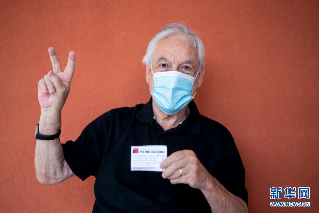 2月12日,在智利南部河大區(qū)福德羅諾市的一處社區(qū)家庭保健中心,智利總統(tǒng)皮涅拉接種中國疫苗后比出“V”的手勢。新華社發(fā)