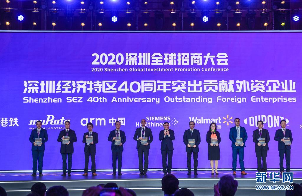 這是深圳經(jīng)濟(jì)特區(qū)40周年突出貢獻(xiàn)外資企業(yè)頒獎(jiǎng)儀式(2020年12月8日攝)。新華社記者 毛思倩 攝